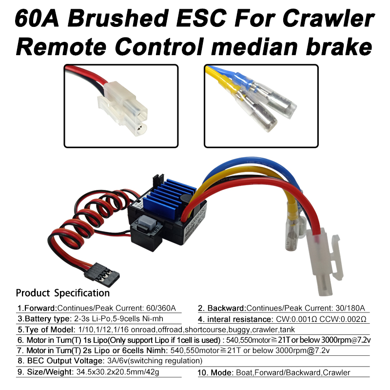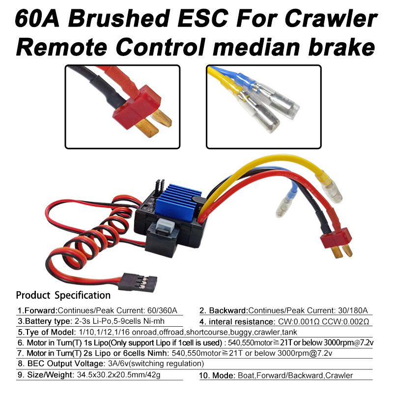 Vrx racing 60A Brushed ESC Electronics Speed Controller For 1/10 RC Car Off road And Boat