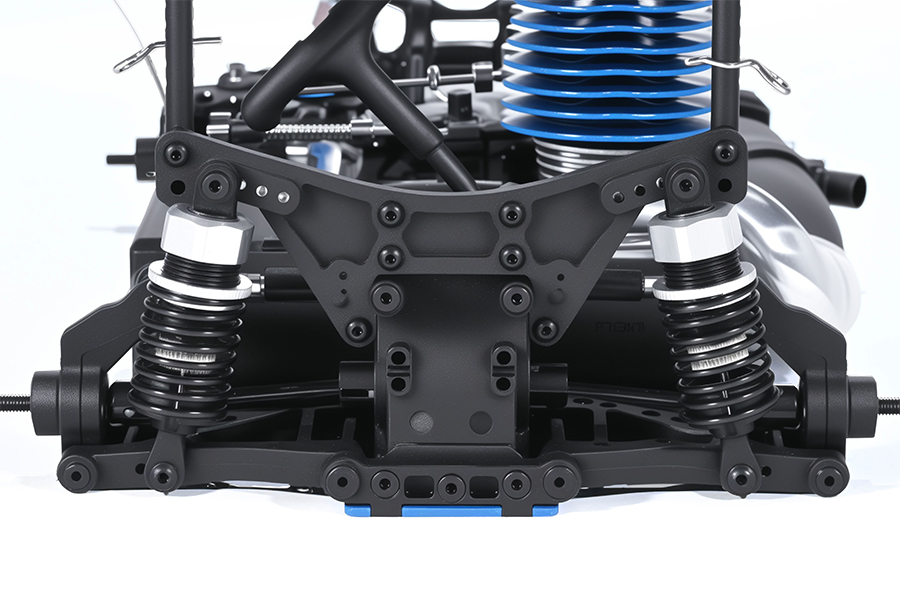 | Equipped big bore oil-filled adjustable shocks offer superior damping control for high-speed and complex terrain. Customize your ride by changing springs, adjusting shock oil, or modifying mounting positions to match any track or driving style |